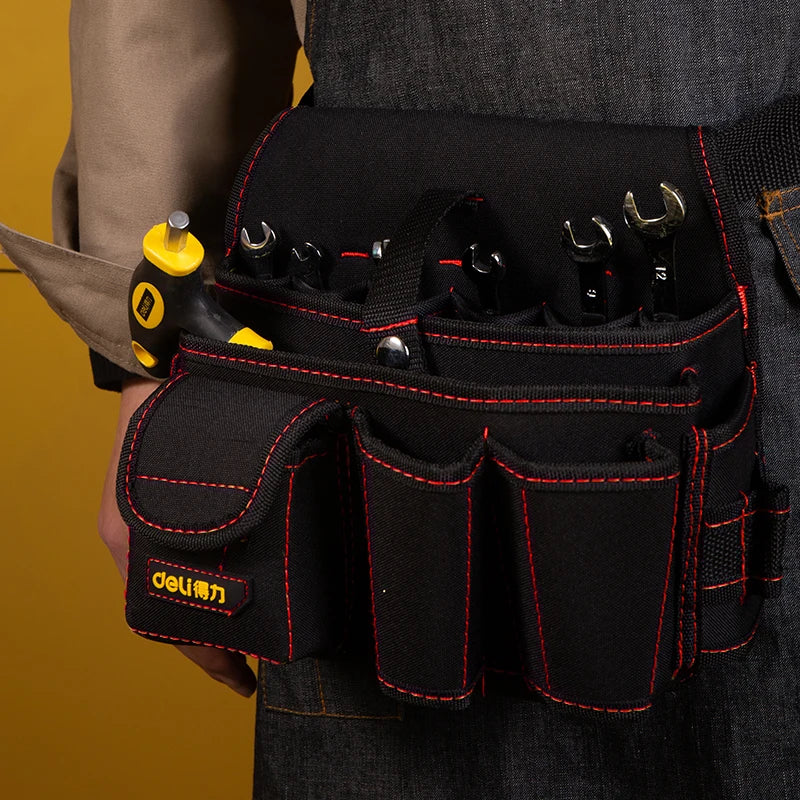 The tool bag features a belt loop, allowing you to wear it around your waist for hands-free convenience. This design is particularly useful for electricians and technicians who need to move around frequently while keeping their tools within easy reach. The adjustable belt ensures a comfortable fit for all users, while the sturdy buckle keeps the bag securely in place. The bag's compact size makes it easy to carry, yet it offers ample storage space for all your essential tools.